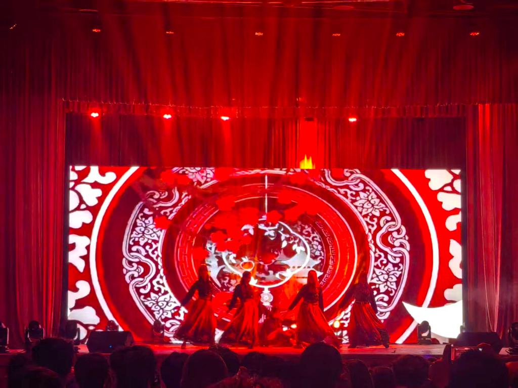 “美·共赴华章”篇章将晚会推向高潮,凸显了美育的多元与包容。少数民族同学朗诵《民族团结心 共铸中华情》勾勒出和谐共生的画卷之美。班主任王雅鸣老师深情寄语,引领同学们以一曲《水手》,吹响了风浪中前行的号角。张蕊蕊老师优雅的民乐《渔舟唱晚》与韩凯老师经典歌剧选段《我的太阳》同台辉映,一中一西,一阳刚一婉约,完美展示了音乐作为世界语言的无穷魅力,体现了美育在融汇古今、贯通中西中的桥梁作用。