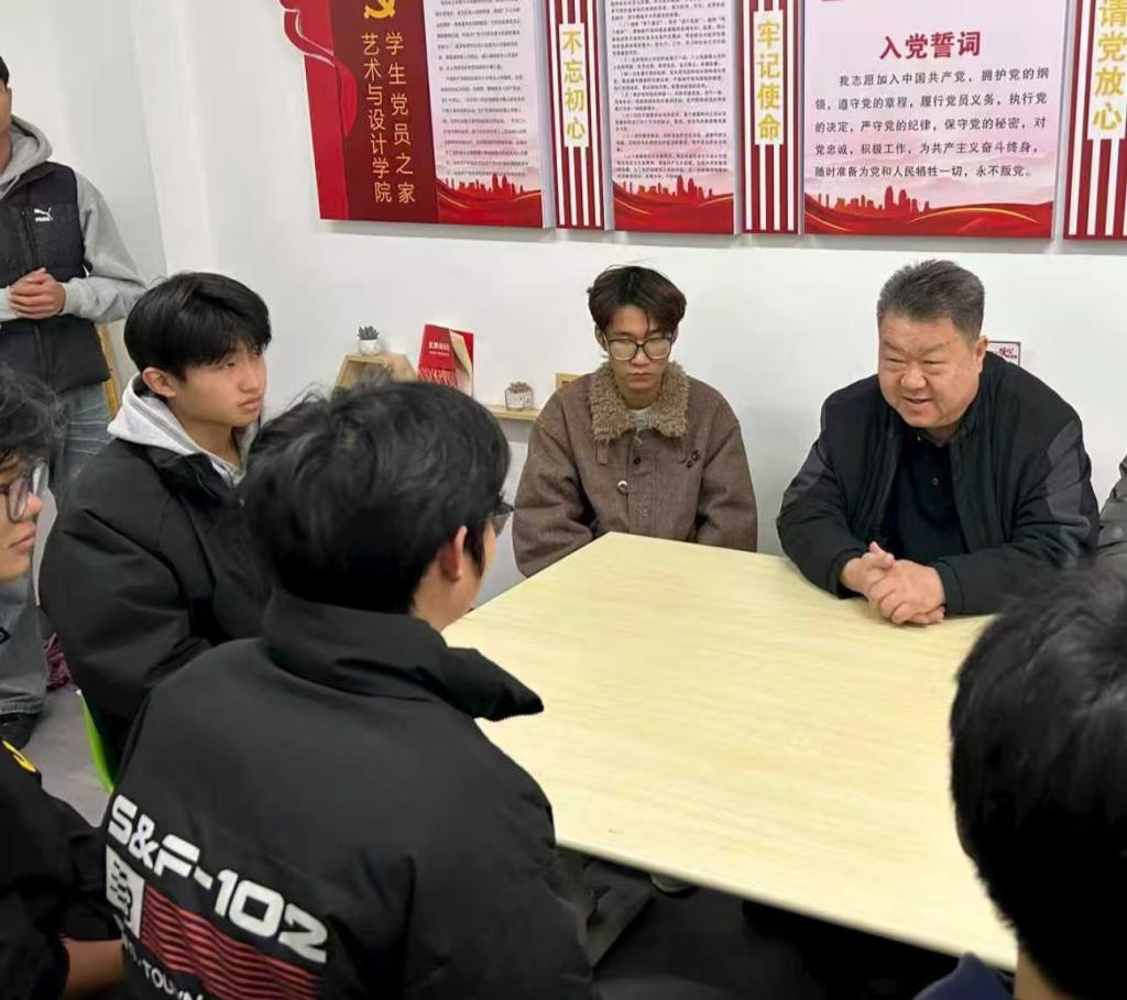 为切实加强学生理想信念教育,引领青年学子端正入党动机,筑牢校园意识形态安全防线,近日,艺术与设计学院党委书记孙波深入学生公寓党建活动室,为学院入党积极分子代表讲授了一堂内涵丰富的意识形态专题党课