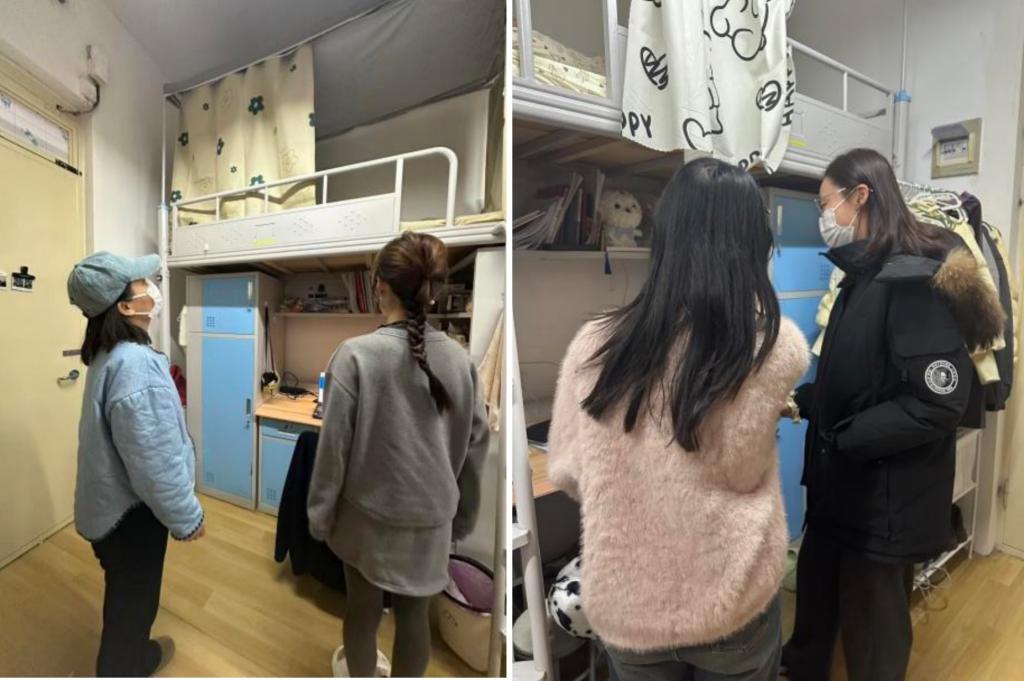 此次检查对1号教学楼和2号教学楼固定教室、1号实验楼、图书馆自习室和宿舍进行全面检查、逐一排查。检查学生是否使用违规大功率电器、是否存在私拉乱接电线、插线板违规串联和卫生整理等问题,同时提醒同学们离校前要彻底关闭电源、水源,清理个人物品,妥善保管贵重物品,锁好门窗,杜绝安全隐患。
