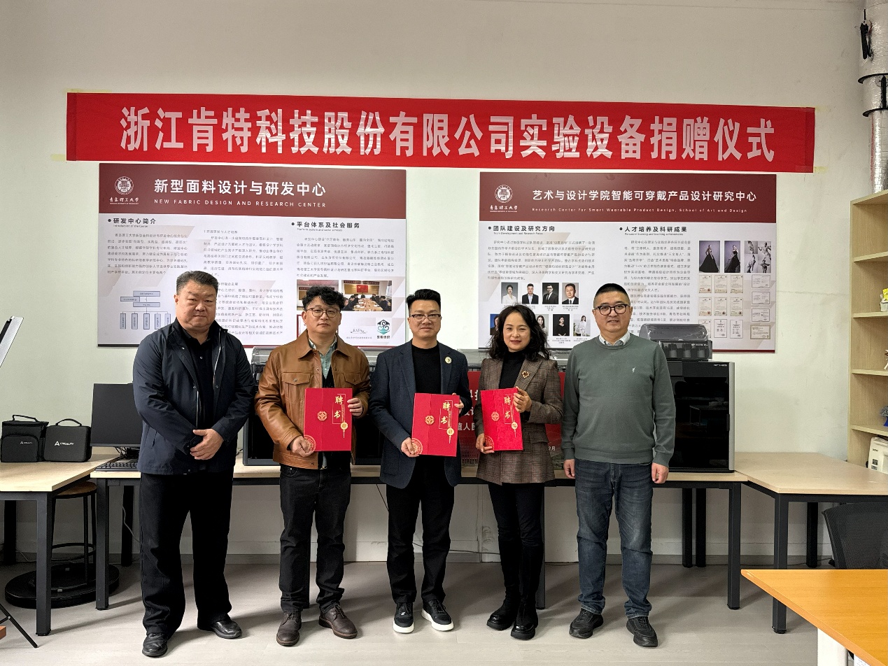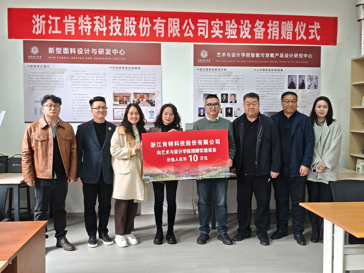 12月10日,浙江肯特科技股份有限公司、山东汝恒纺织有限公司来校交流,与艺术与设计学院合作成立面料研发与设计基地,并向学院捐赠价值10余万元的实验设备。仪式在艺术与设计学院新型面料设计与研发中心举行。艺术与设计学院党委书记孙波、院长朱宏轩、副院长丁南,浙江肯特科技股份有限公司财务总监楼奕锋、业务主管余勇强,山东汝恒纺织有限公司总经理刘麟、艺术与设计学院产品设计系相关老师出席仪式。